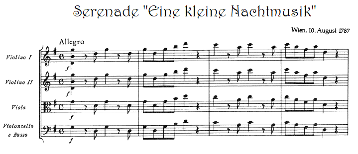 Mozart – Une Petite Musique de Nuit (Début du 1er mouvement, motif en forme de fanfare)